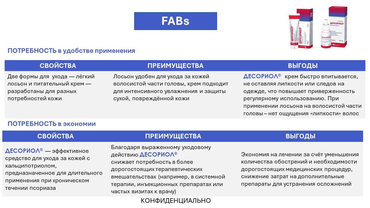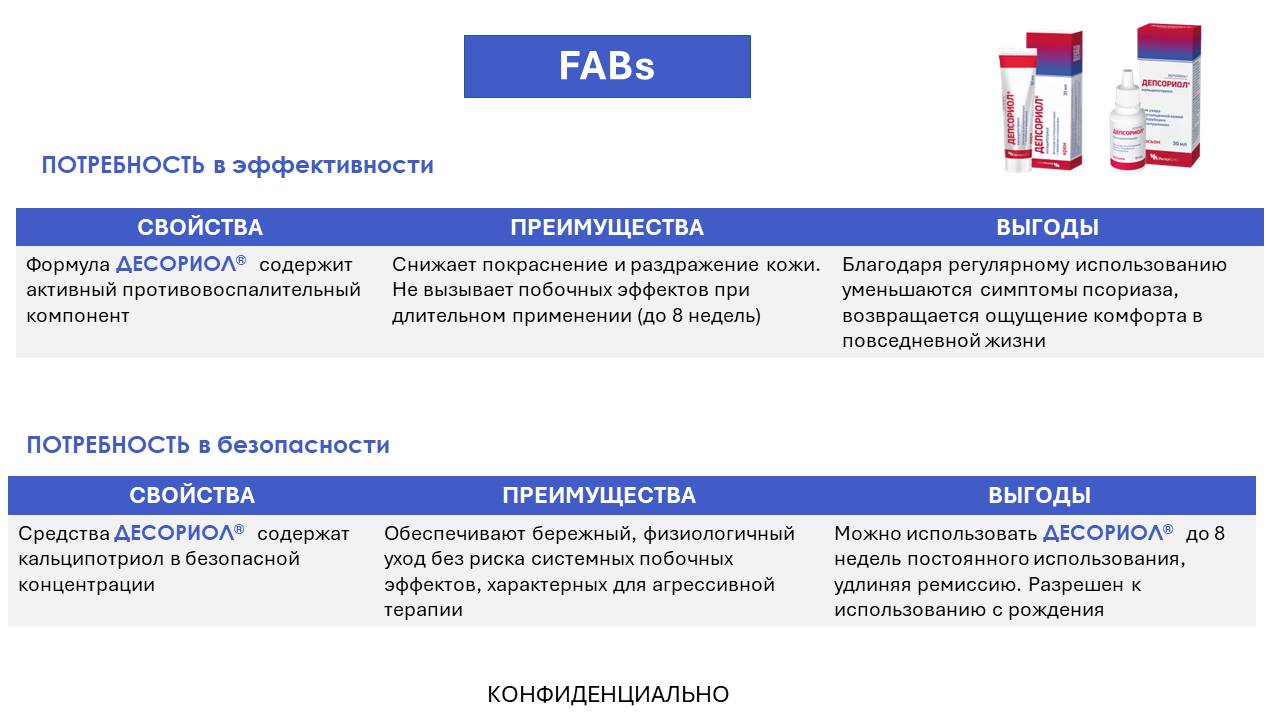 Ключевое сообщение: ДЕПСОРИОЛ® -НЕгормональное средство с выраженной противовоспалительной активностью для контроля псориаза волосистой части головы и гладкой кожи