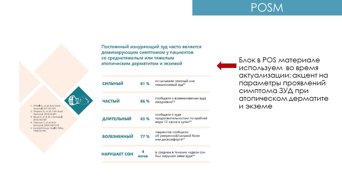 Постоянный изнуряющий зуд часто является доминирующим симптомом со среднетяжелым или тяжелым атопическим дерматитом и экземой у взрослых1