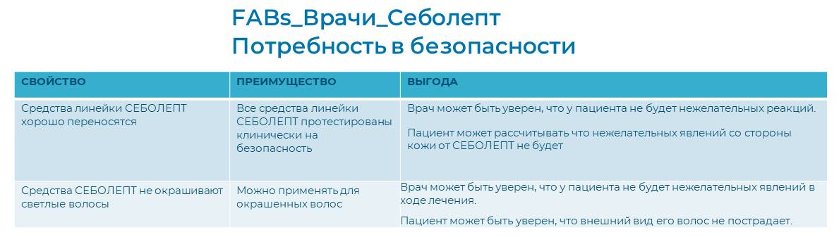 2.Сформировать у врача знание о преимуществах шампуня от перхоти Себолепт и всей линейки в целом