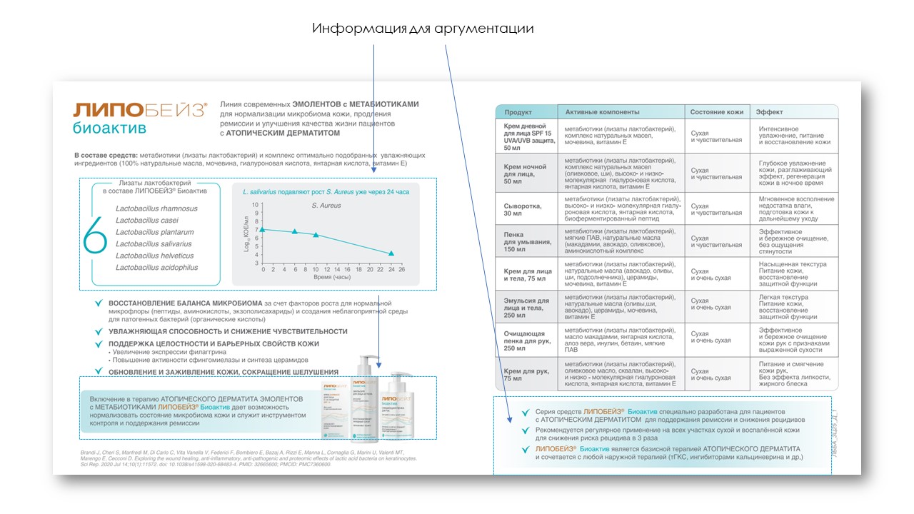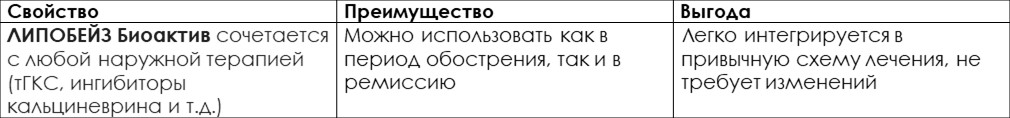 Как мы с Вами обсудили, продлевать ремиссию и улучшать качество жизни пациентов с атопическим дерматитом (АтД) помогает включение в состав терапии современных эмолентов ЛИПОБЕЙЗ Биоактив с метабиотиками — новое поколение биотиков (сочетание про- и пре- биотиков + готовых метаболитов):