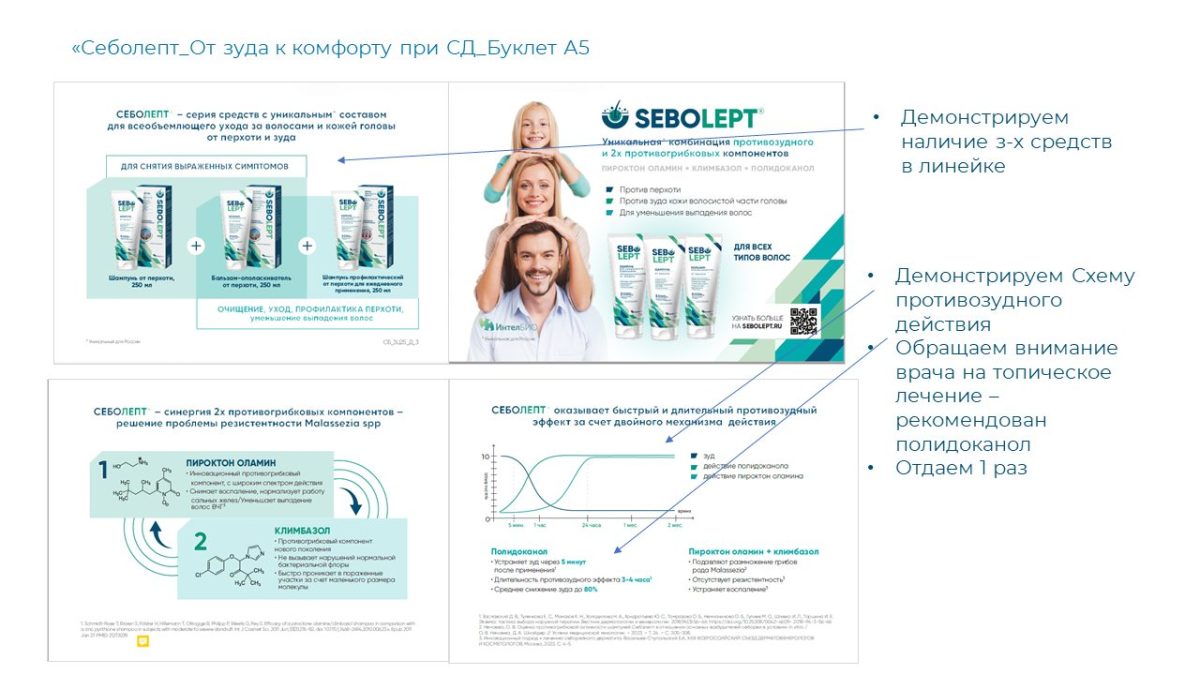 4.Напомнить врачу, что Себолепт линейка включает средства для лечения и профилактики перхоти и зуда: шампунь от перхоти и шампунь ежедневный и бальзам ополаскиватель для профилактики.