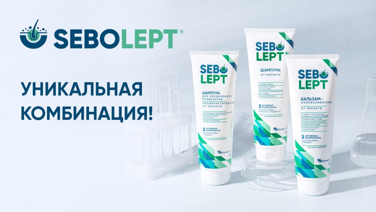 Ключевое сообщение: Себолепт — уникальная* комбинация противозудного и 2-х противогрибковых компонентов для лечения и профилактики перхоти и зуда.