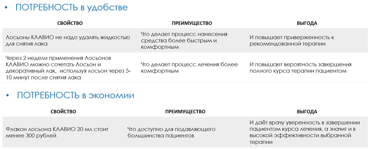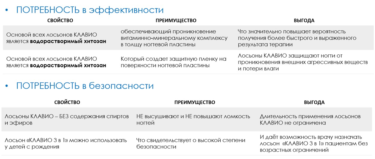 1.Узнать, был ли у врача опыт назначения лосьонов КЛАВИО для восстановления ногтей после онихомикозов? Какой именно Лосьон КЛАВИО назначал доктор? Доволен ли эффектами? Рассказанные врачом клинические случаи помогут определить действительно ли доктор назначает КЛАВИО и даст Вам возможность транслировать позитивный опыт другим врачам, а также сразу отработать возражения врача.
