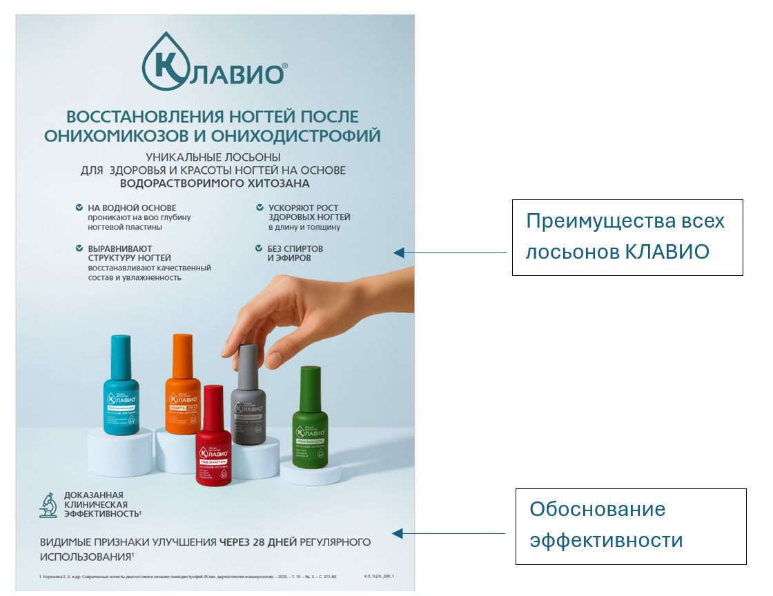 Таким образом, Клавио — не замена противогрибковой терапии, а необходимый этап после неё для восстановления ногтевой пластины