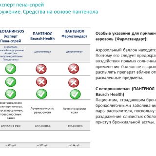 обеспечивает регенерирующее действие с дополнительными противозудным, противовоспалительным, подсушивающим эффектом, что отличает его от прямой конкурентной группы средств на основе пантенолов, которая не обеспечивает дополнительных эффектов